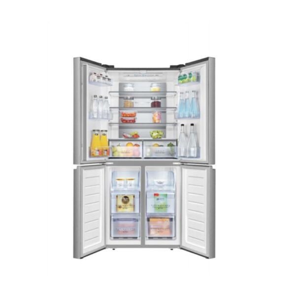Hisense 424L Double Door Refrigerator Silver finish modern design Multi-airflow cooling system 424L capacity storage space Energy-efficient tempered glass shelves