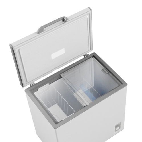 Its clean white inner lining offers a bright, hygienic interior that’s easy to wipe down and maintain. The top-open chest design allows for easy access to contents, making it simple to store and retrieve frozen goods such as meat, vegetables, and ready-made meals.