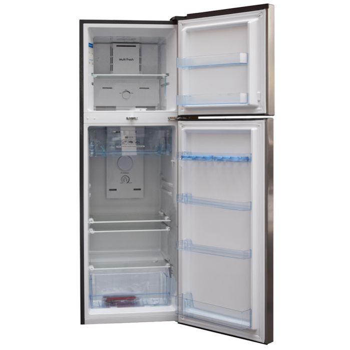 243-litre capacity Double door design No frost technology Separate freezer and fridge compartments Adjustable glass shelves Transparent door racks Interior LED lighting Energy efficient Sleek silver finish