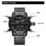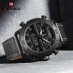 Brand :Naviforce Functional features :Complete calendar display, Digital & Analogue Dual time display, Alarm, stopwatch and Led light for night vision 30M Water Resistant 45mm dial diameter 15mm case thickness Straps: Genuine Leather
