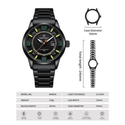 Beyond its eye-catching aesthetics, the NF8044 is built to withstand everyday challenges with water resistance and reliable quartz movement. The durable stainless steel construction ensures long-lasting wear, while the waterproof feature protects it from splashes, rain, and brief immersion. Whether you’re navigating a busy workday or enjoying a night out, this watch combines style, durability, and precision to keep you on time and in trend.