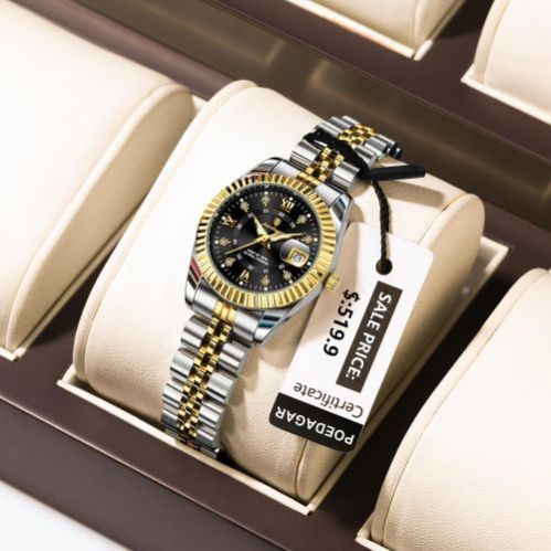 Stylish and elegant dial design Precision quartz movement Polished stainless steel strap and case Water-resistant (3ATM) Scratch-resistant mineral glass Secure and adjustable clasp Lightweight and comfortable for all-day wear Ideal for casual, business, or formal looks